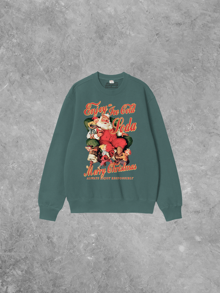 Get in the holiday spirit in our Enjoy an Ice Cold Soda, vintage inspired Santa boxy cotton sweatshirt