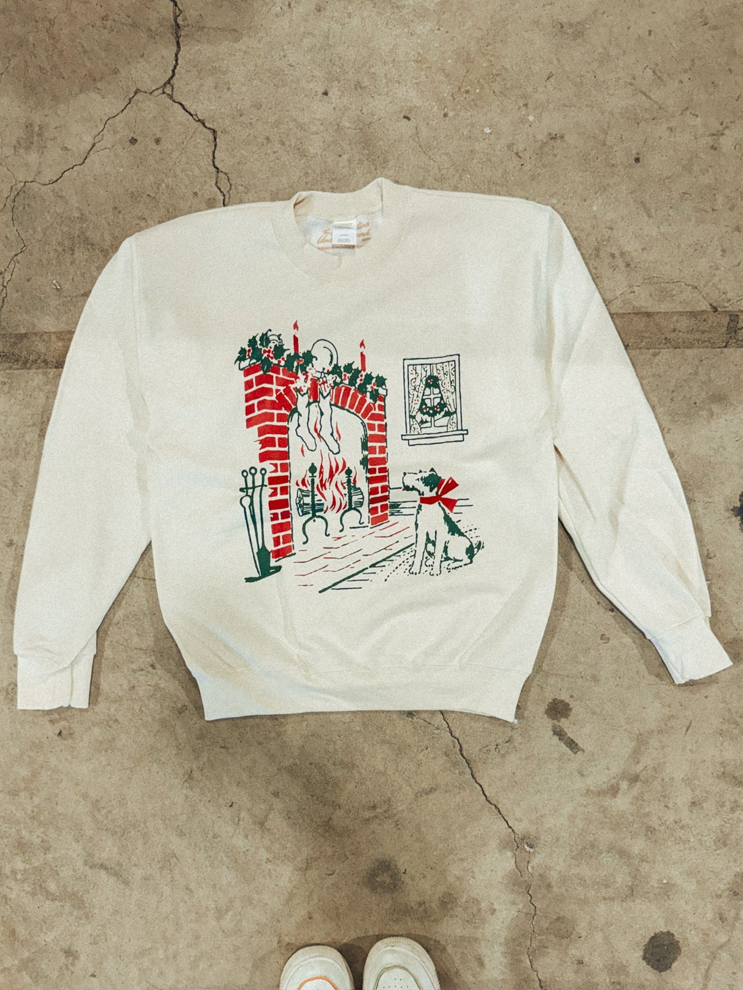 Underground Original Design: Dog at Fireplace Boxy Cotton 90's Christmas Sweatshirt