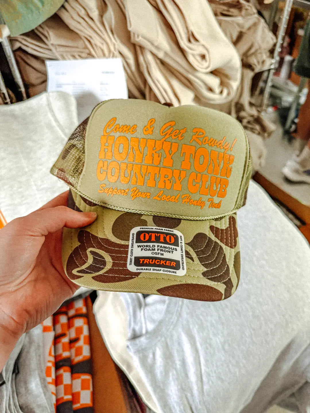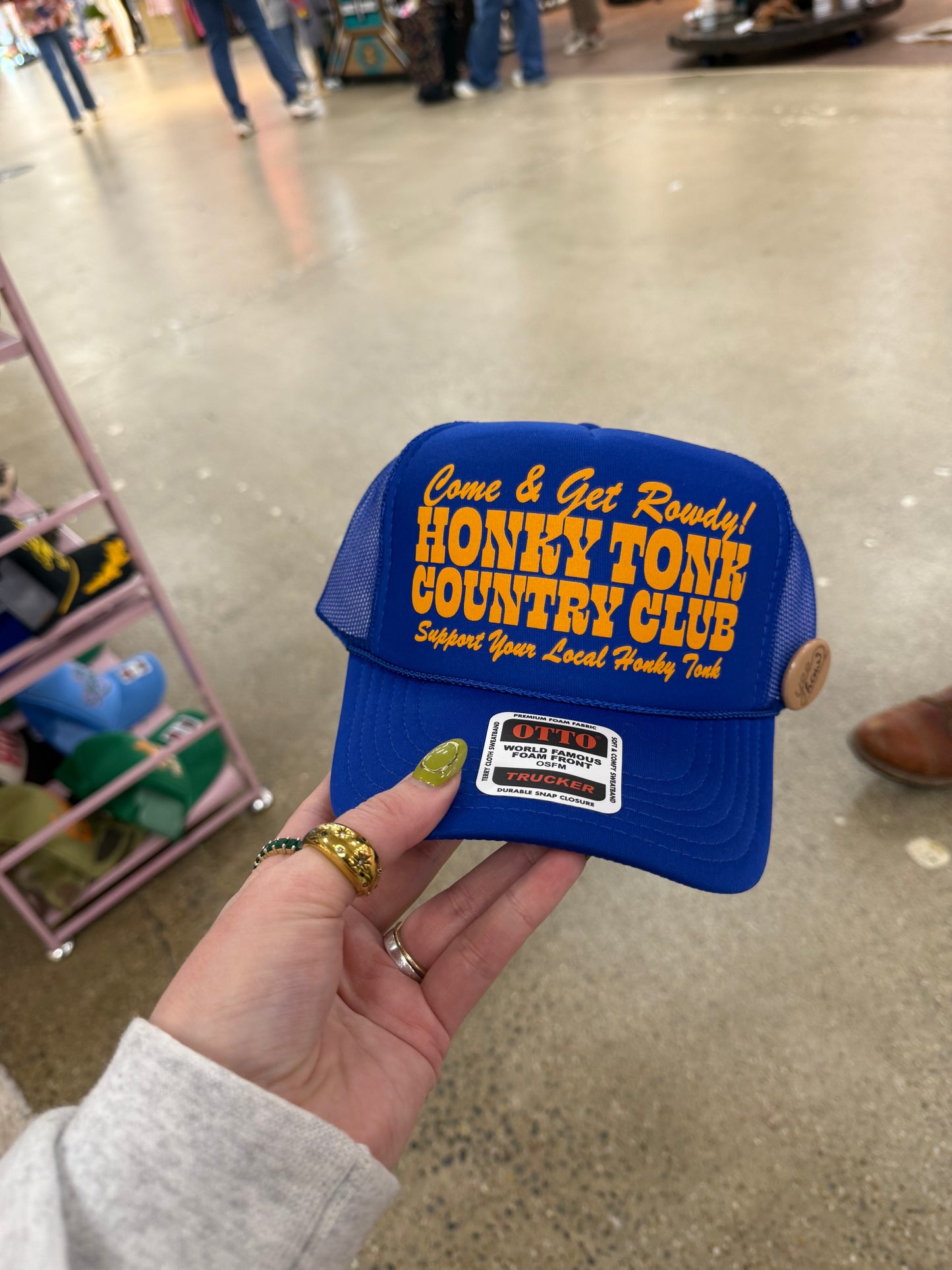 Come join us at the Honky Tonk in our Honky Tonk Country Club trucker hat.