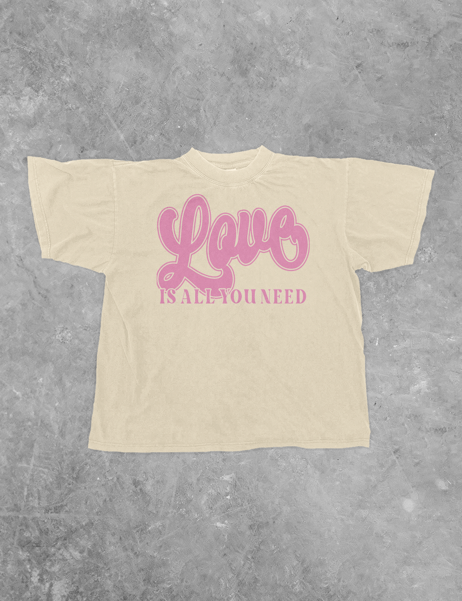 Show your love this Valentine's Day in our Love Is All You Need vintage wash boxy cotton t-shirt!