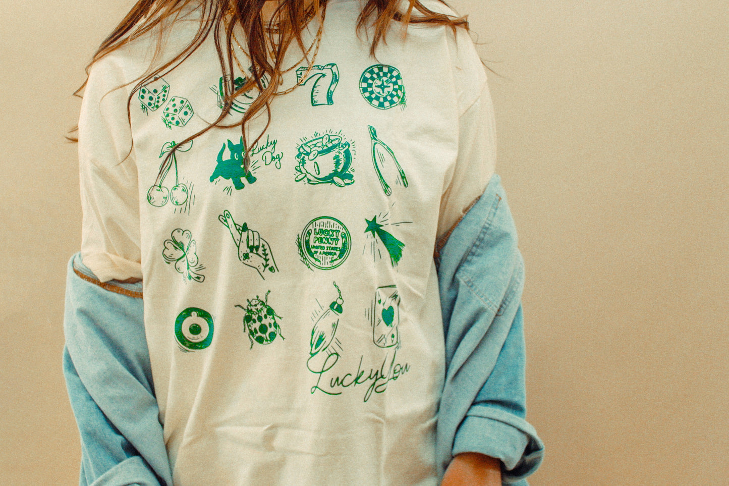 Underground Original Design: Lucky You, Collage Icon Boxy Cotton TShirt