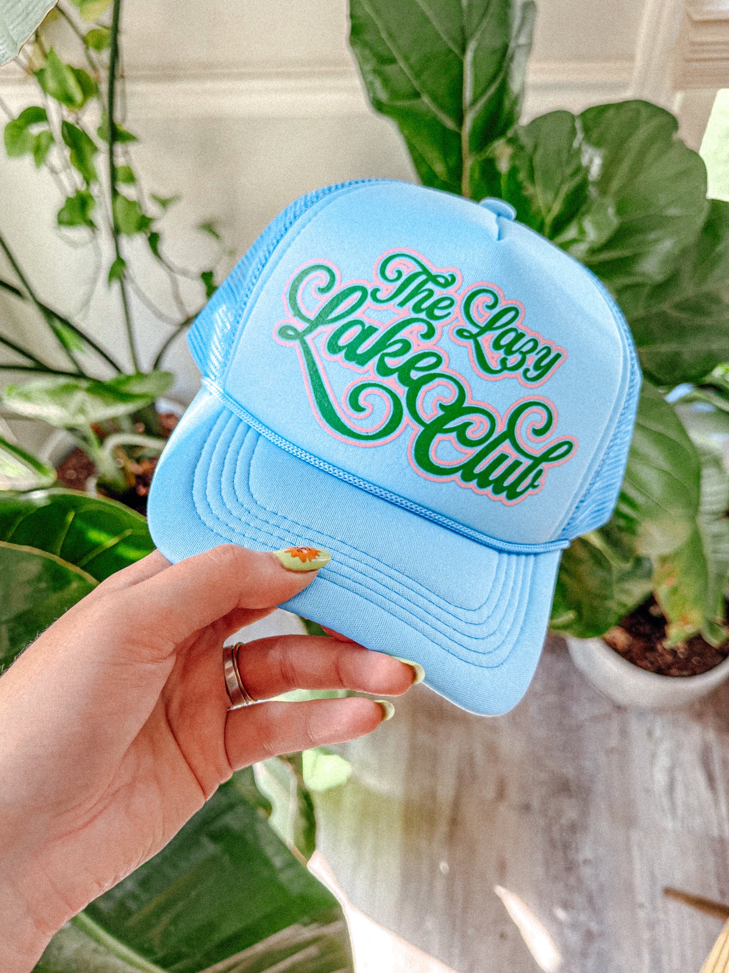 Show of your style while lounging by the Lake in our Lazy Lake Days Club trucker hat.