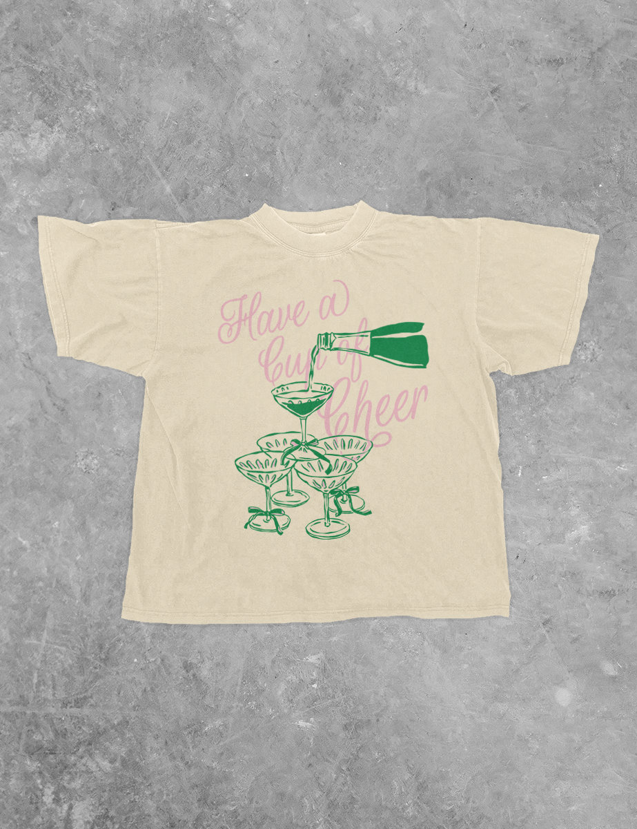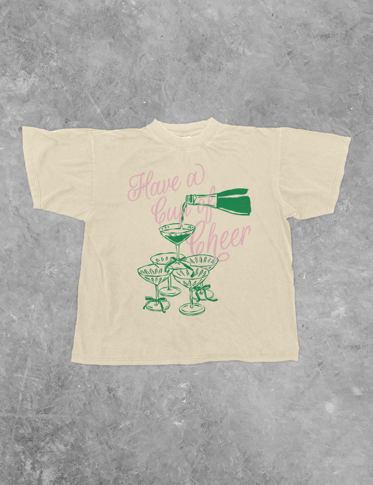 Have A Cup of Cheer in our super cozy Boxy Cotton T-Shirt, just in time for the Holiday season!