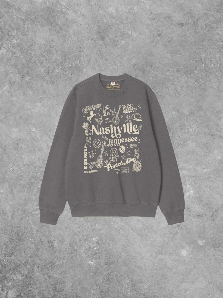 Underground Original Design: Nashville Tennessee Collage Boxy Cotton Sweatshirt
