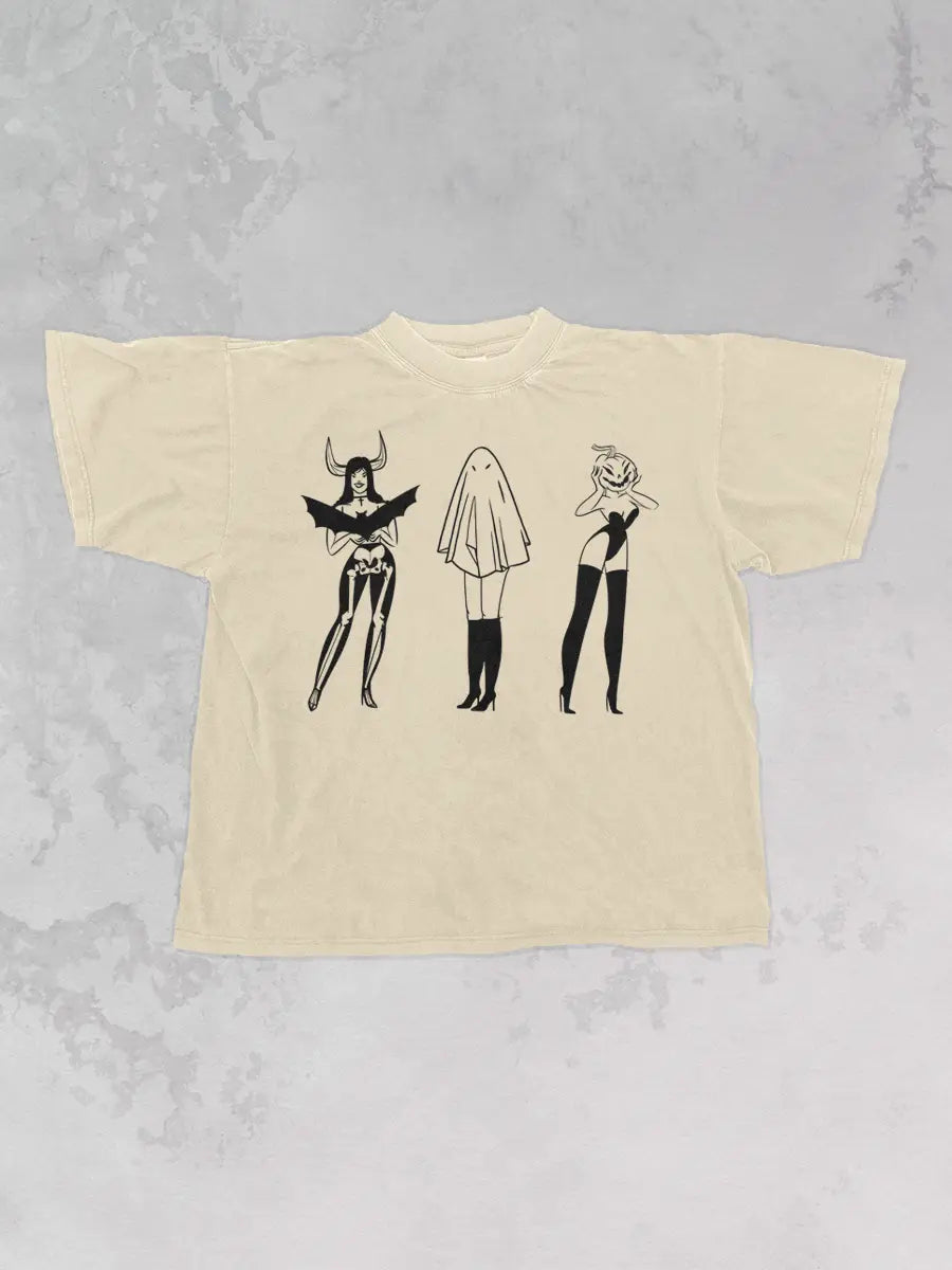Celebrate spooky season with our 3 Ghoulish Girls oversized Halloween graphic tees!